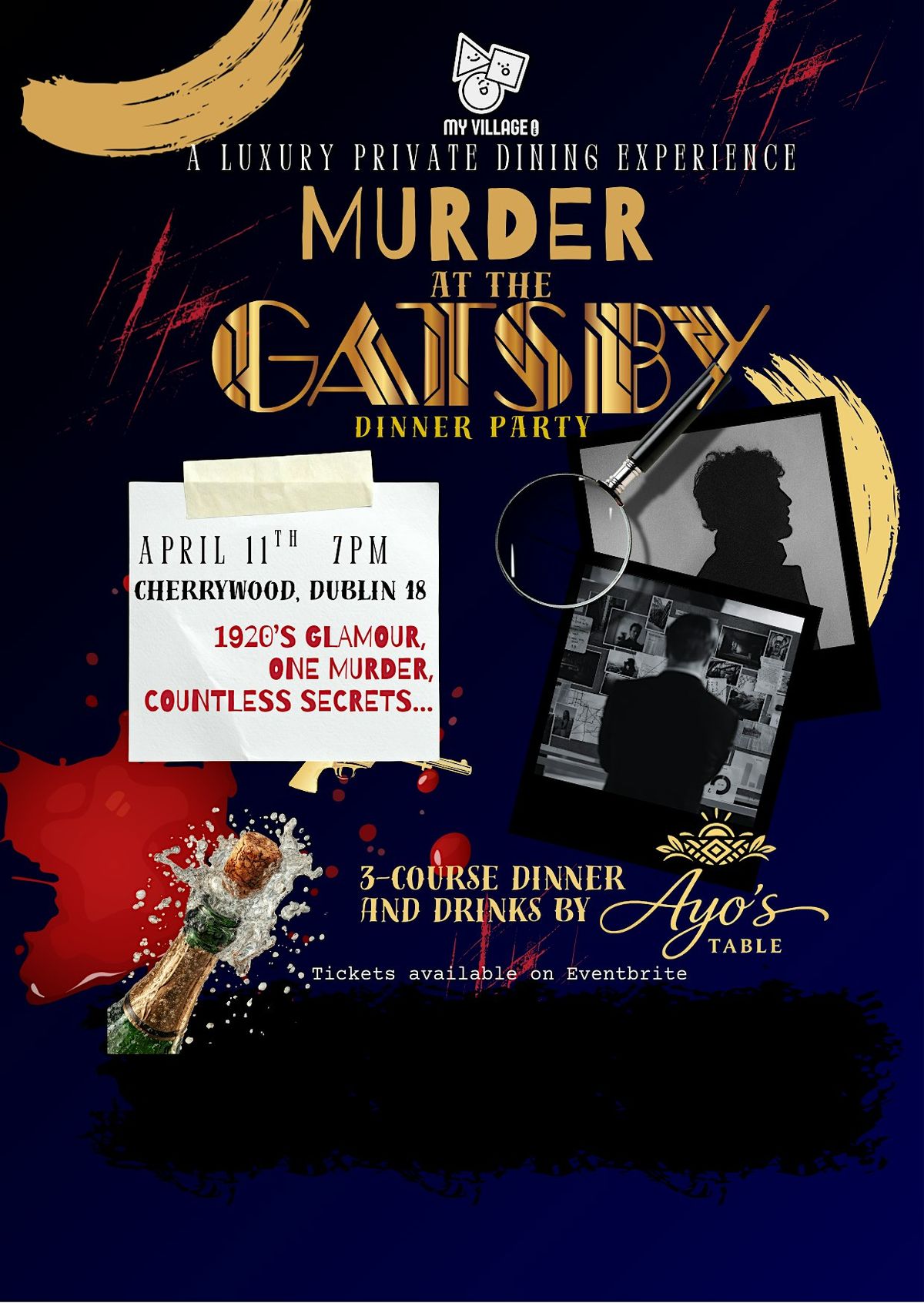 Guests will enjoy a luxury 3-course dinner with unlimited wine, curated by our partner chef AyosTable, while taking on unique characters in a thrilling M**der mystery experience. As the night unfolds, secrets will surface, alliances will form, and one question will remain — who committed the M**der?