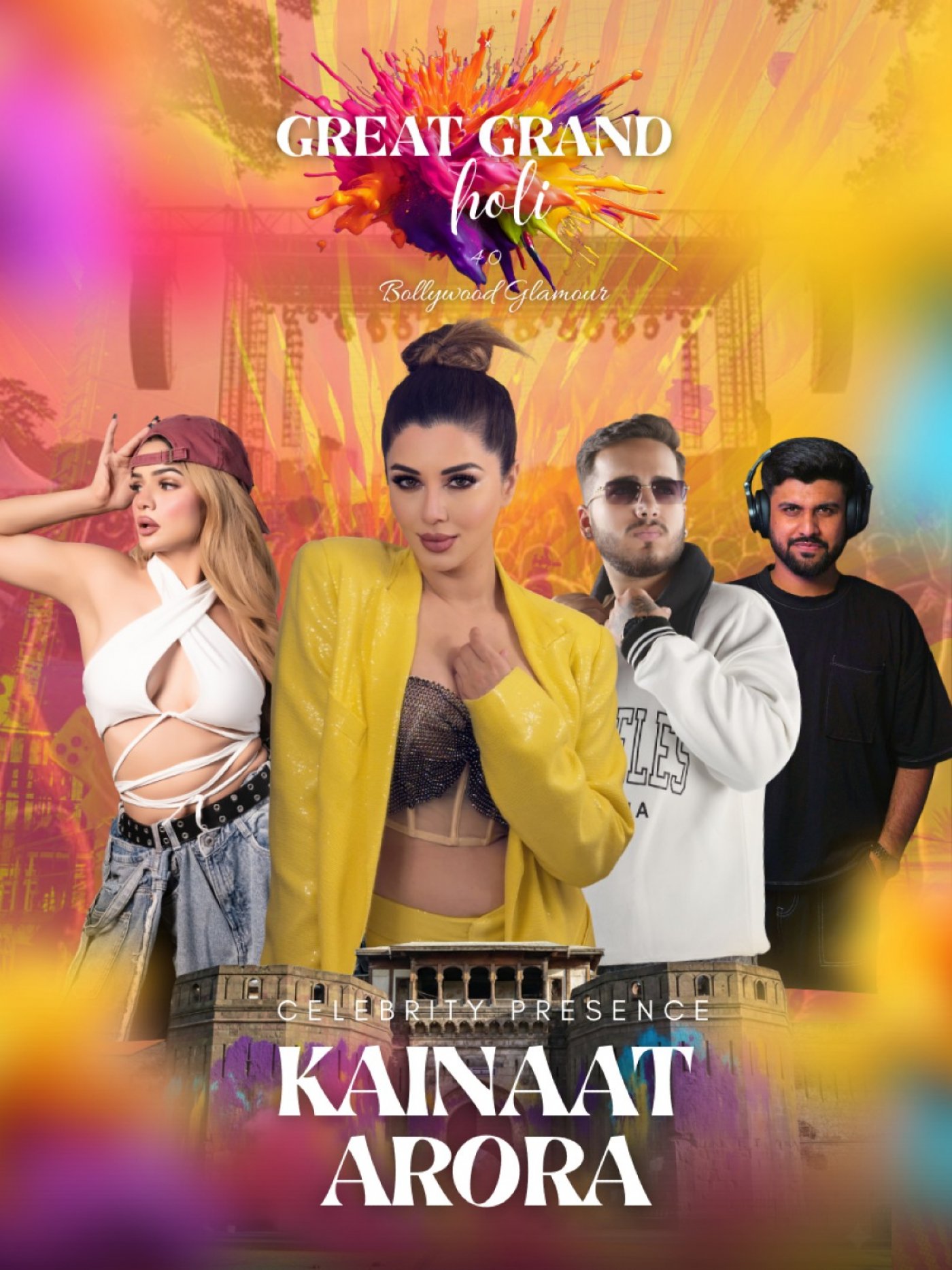 GRAND EVENT WITH OVERALL CROWD OF OVER 10,000 AUDIENCE, WELCOMING THE BOLLYWOOD DIVA MS.KAINAAT ARORA (also performed in great grand masti), including Rain dance, organic colors, foam blaster, live dhol's, holi selfie booth, open air