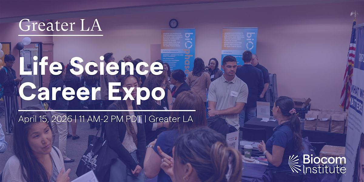 Biocom Institute invites you the Greater LA Life Science Career Expo on April 15, 2026, from 11 am to 2 pm. This event connects job ready talent with hiring life science companies through targeted networking and career focused programming. Meet employers actively recruiting, explore open roles, and engage directly with industry professionals. Whether you are early in your career or seeking your next opportunity, this curated hiring experience is designed to help you take the next step with confidence