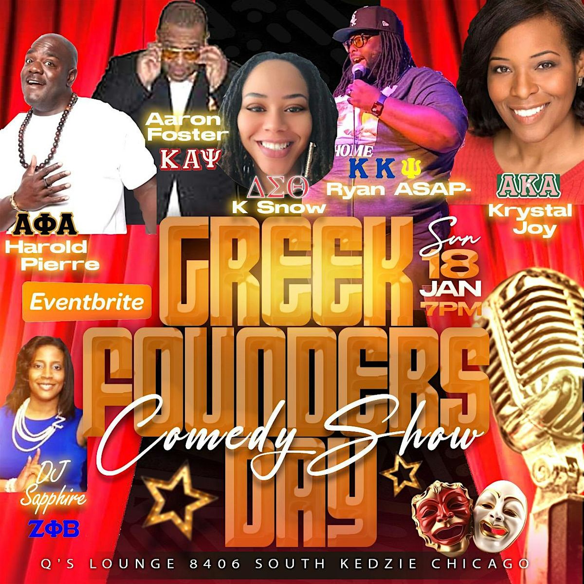 Join us in person for a night full of laughs and good vibes at the Greek Founders Day Comedy Show! Featuring some of the most talented Comedians who are also members of Black Greek Letter organizations. Bring your friends and get ready to laugh till your sides hurt—you won’t want to miss this!