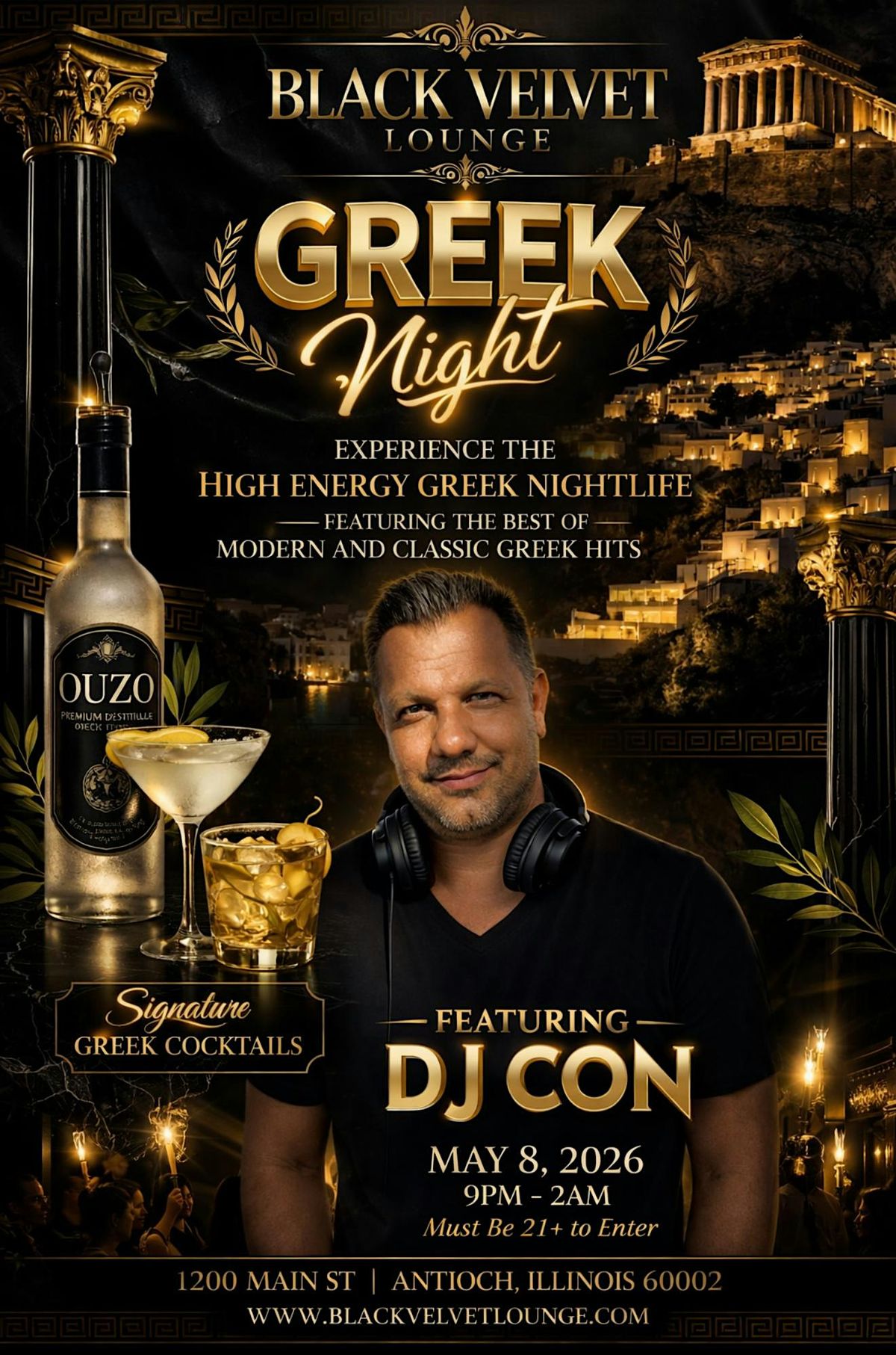 Step into a night of luxury, energy, and unforgettable vibes Join us on Friday, May 8th as we bring the ultimate Greek nightlife experience to Antioch — featuring the best of modern and classic Greek hits all night long.