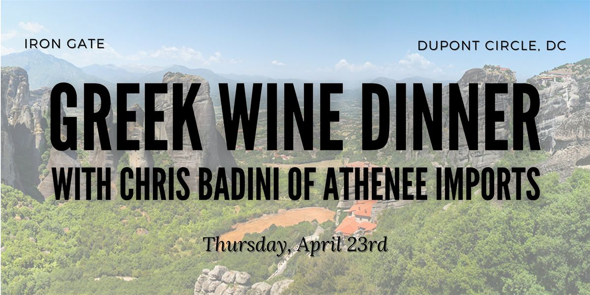 We are excited to have Athenee East Coast Sales Manager, Chris Badini, join us for a four-course family-style meal paired with their traditional, authentic Greek wines. Join us to hear more about Greek wine's story and how these small producers are changing the the industry!