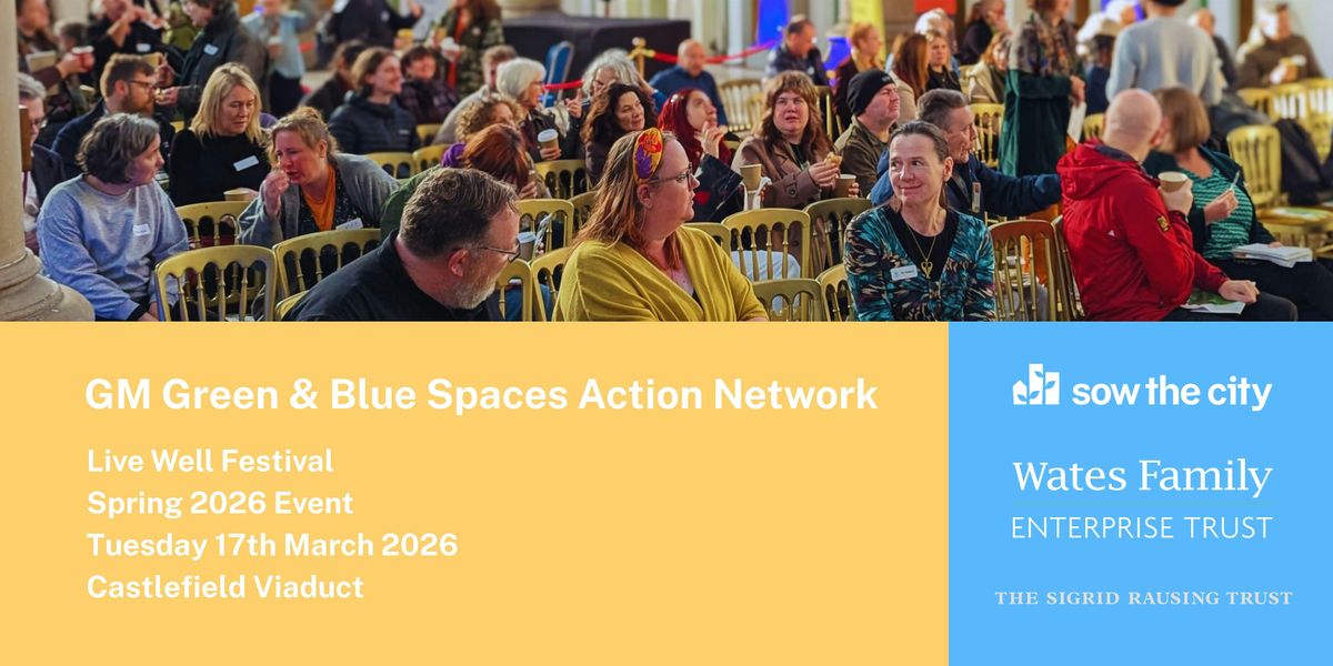Expect a mix of purposeful networking and hands-on creativity. There’ll be plenty of time to chat, share ideas and meet other organisations working in green and blue community spaces across Greater Manchester.