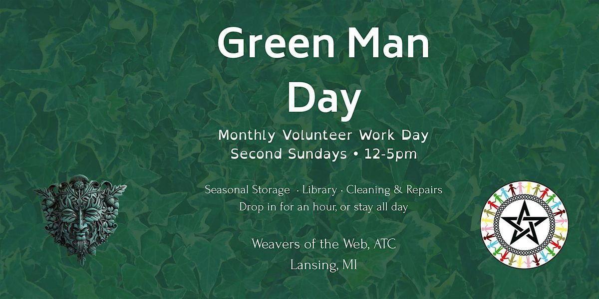 Green Man Day is Weavers of the Web's monthly hands-on volunteer work party — a low-pressure, drop-in-friendly day to care for our space and get ready for the season ahead. Tasks rotate with the wheel of the year and commonly include seasonal décor switchover, storage and donation organization, library projects, and cleaning and maintenance. No special skills required; there's always something for every body and every energy level, and accessibility accommodations are available on request.