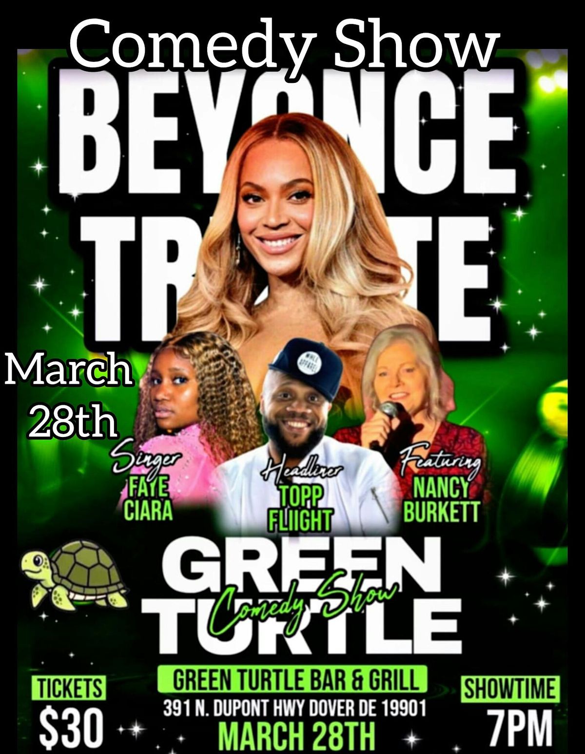 Green Turtle Comedy Show and music tribute