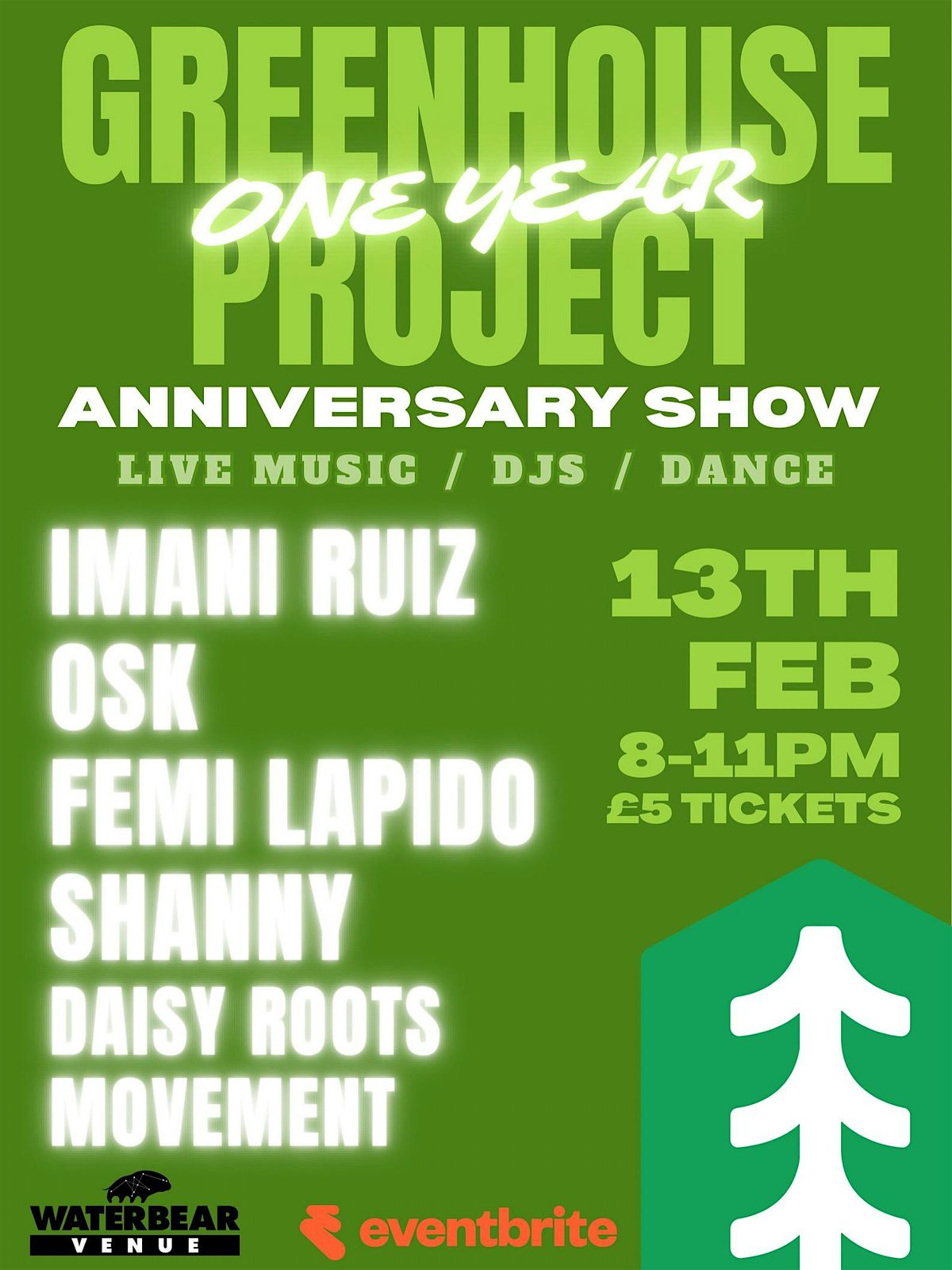 Celebrate 1 Year of Greenhouse Project with us! Live Music, DJs, Dance and Good Vibes!About this Event