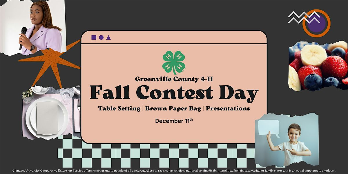 Join us for the Greenville County Fall Contest Day! Members can choose to participate in one or all of the following contests! The contest will take place at the Greenville County Extension Office on December 11th from 4:00 to 6:00 pm!