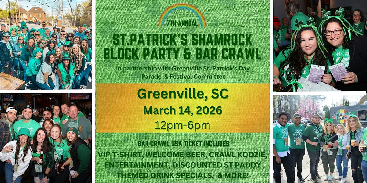 𝗧𝗶𝗰𝗸𝗲𝘁 𝗹𝗶𝗻𝗸: GreenvilleStPaddyCrawl2026.eventbrite.com