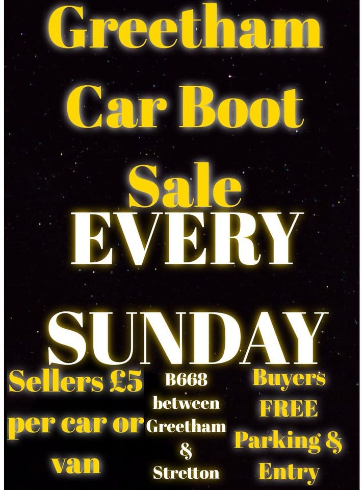 WHAT * GREETHAM CAR BOOT WHEN * This Sunday & Every SundayWHERE * B668 Stretton Rd between Greetham & Stretton LE157SB