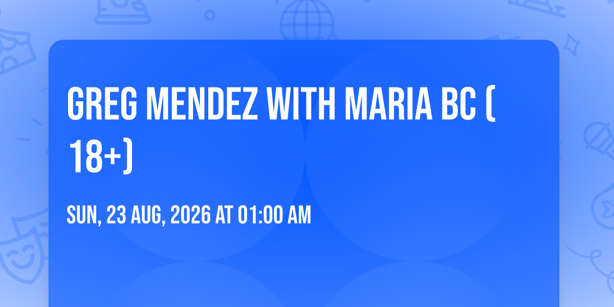 π Location: 39.095, -94.5815β¨ Discover the extraordinary at Greg Mendez with Maria BC (18+), where magic meets reality in ways you've never imagined! ποΈ Set in recordBar nestled in bustling Kansas City, MO, this event promises to be a landmark occasion. π Taking place on August 23rd, 2026 at 01:00 AM, it's going to create an atmosphere where every moment becomes a cherished memory. π Immerse yourself in an experience crafted with attention to every detail, designed to surprise and delight at every turn. They have worked tirelessly to ensure this event exceeds all expectations, bringing together elements of entertainment, innovation, and pure joy. π Don't miss your chance to be part of this remarkable journey!