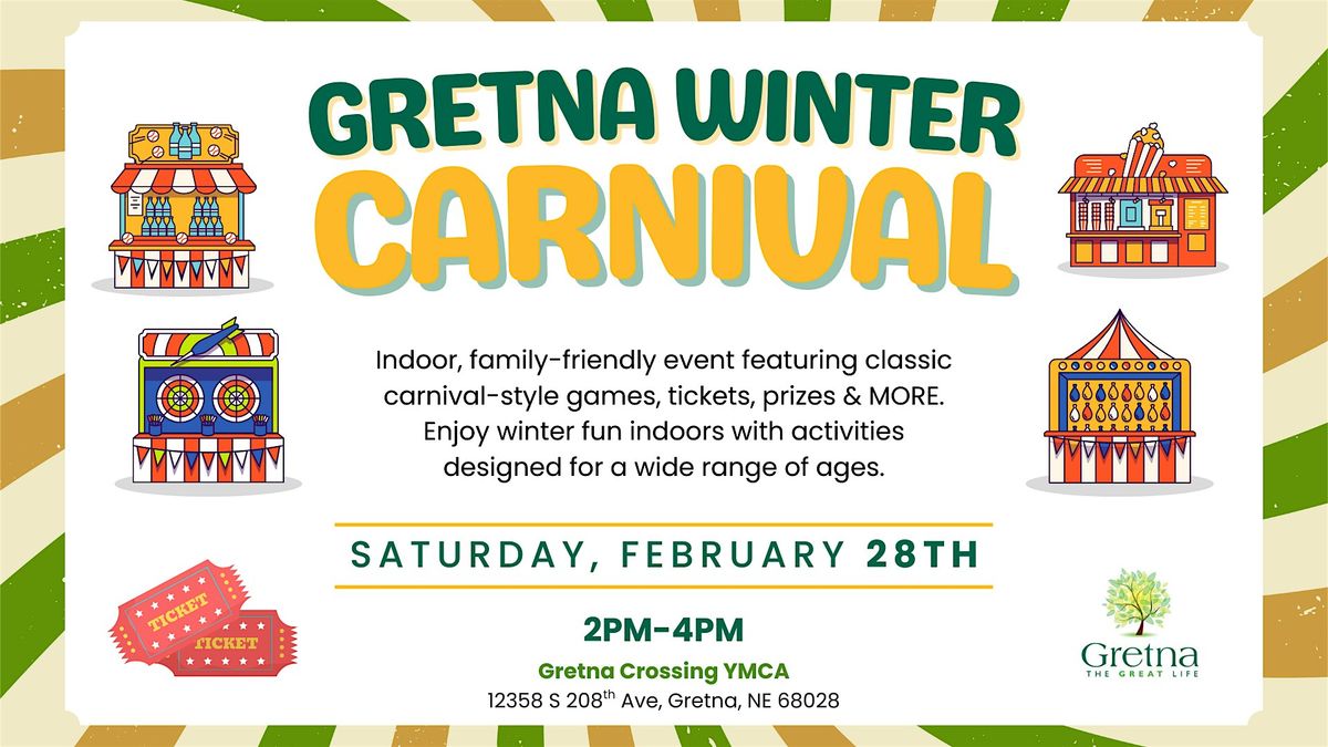 Join the City of Gretna for our Winter Carnival on Saturday, February 28th from 2:00–4:00 PM at the Gretna Crossing YMCA Gymnasium. Free to attend!