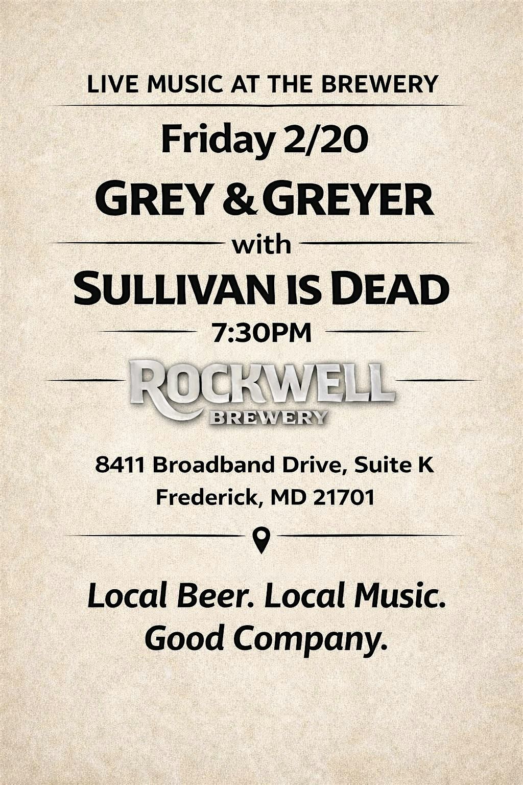 GREY & GREYER with SULLIVAN IS DEAD Live in Concert @ Rockwell Brewery 2/20