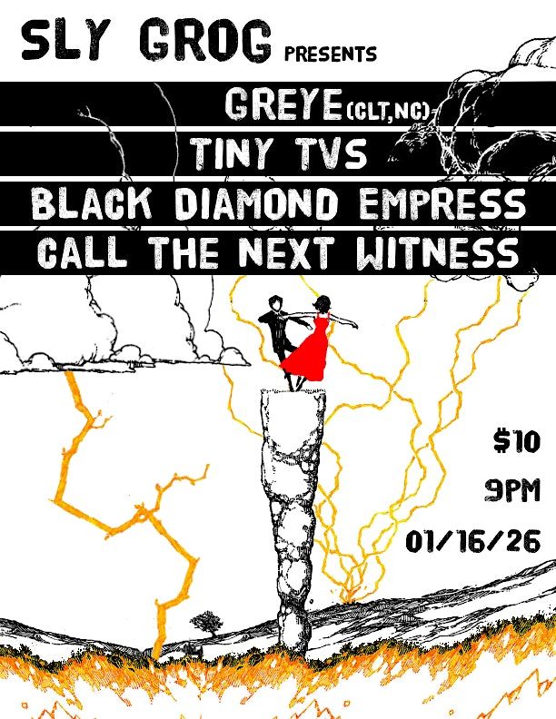 An epic night of music featuring: Greye (CLT), Tiny TVs, Black Diamond Express, Call The Next Witness