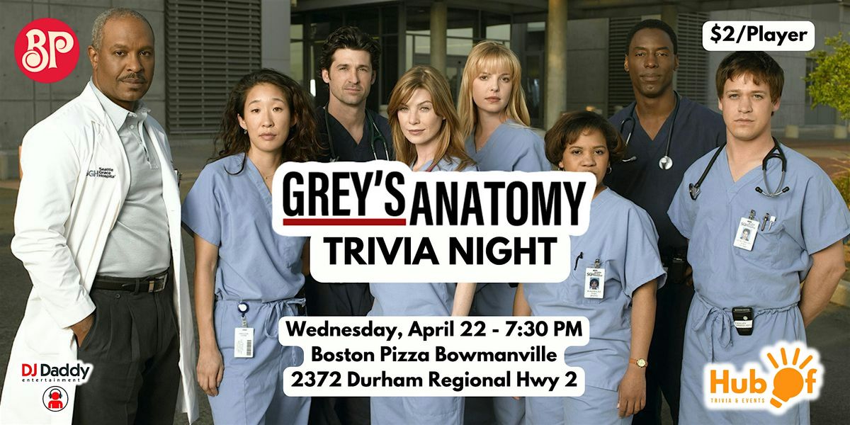 GREY'S ANATOMY Trivia Night - Boston Pizza (Bowmanville)