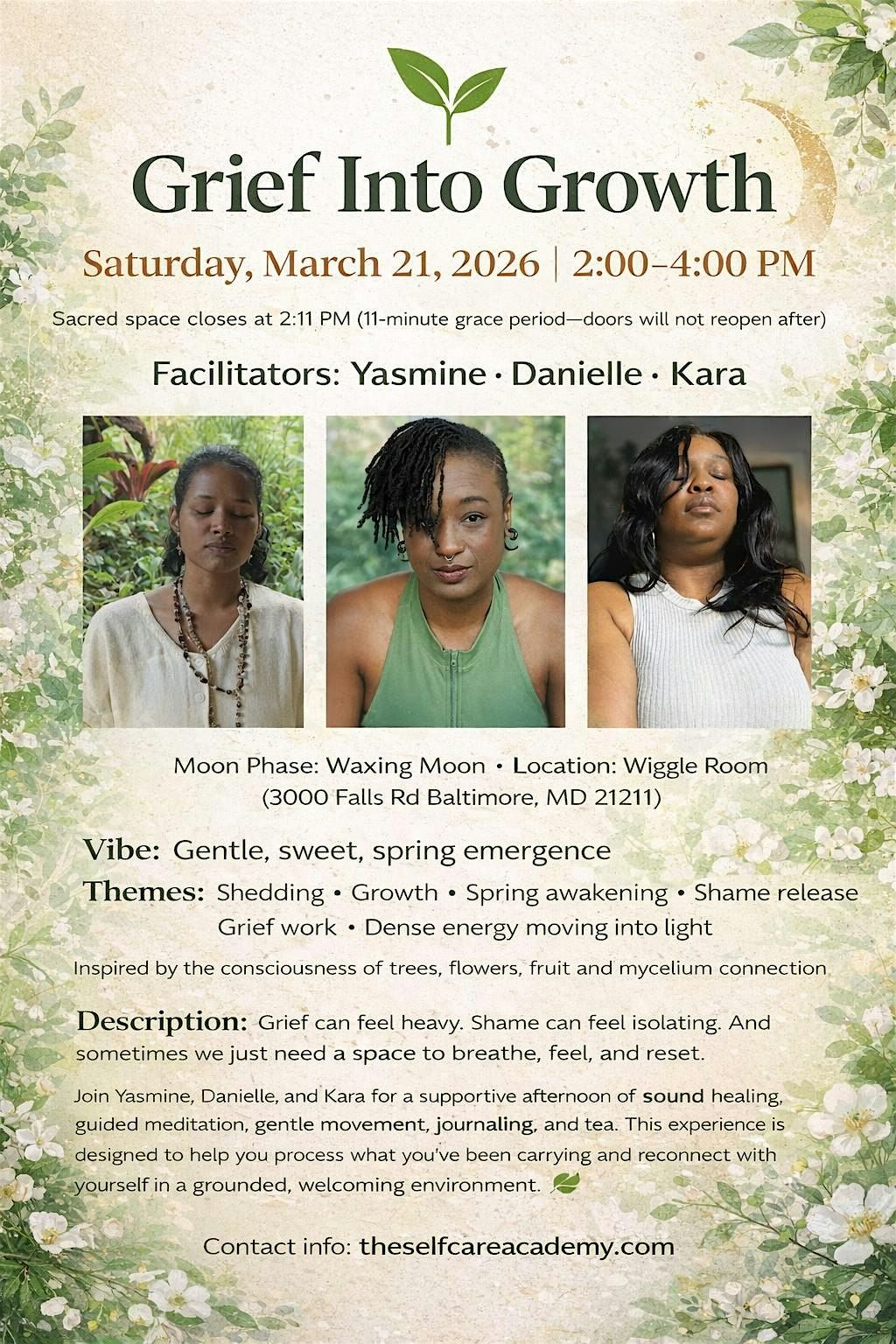 Join Yasmine, Danielle, and Kara for a supportive afternoon of sound healing, guided meditation, gentle movement, journaling, and tea. This experience is designed to help you process what you’ve been carrying and reconnect with yourself in a grounded, welcoming environment.