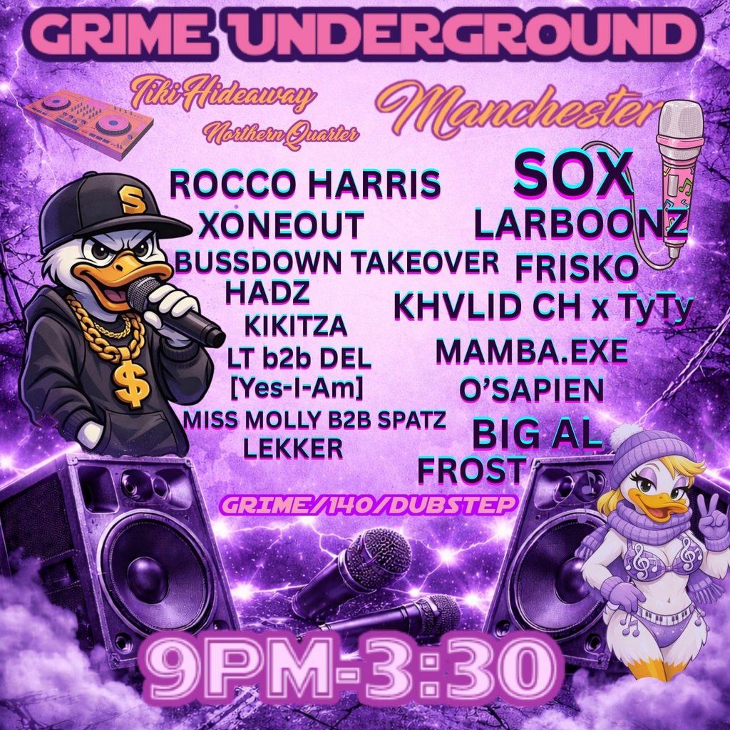 A deep dive into 140 BPM, grime and dubstep in the heart of Manchester's Northern Quarter. This night is built around heavy bass, raw energy and vibesArtists