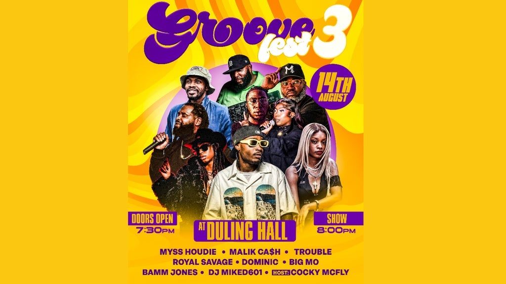 Are you ready to catch the GROOVE? Meet us at Duling Hall for the grooviest time of the summer on August 14th. It's going to be an awesome night of music, dance, laughter, and culture and we can't wait to see you there. Catch amazing live performances by Myss Houdie, Malik Ca$h, Dominic, Royal Savage, Trouble, Bamm Jones, and Big Mo. Host: Cocky McFly Soundwaves: DJ Mike601