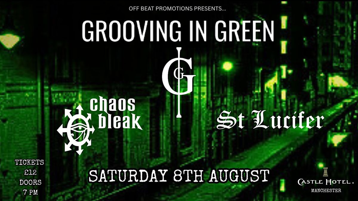 Off-Beat Promotions presents a a night of Gothic Rock/Post-Punk/Industrial at The Castle Hotel, Manchester, featuring three of the UK's top contemporary acts, GROOVING IN GREEN, CHAOS BLEAK, & ST LUCIFER.