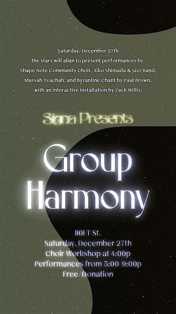 From 4pm into the evening, join us for our workshop and performance series GROUP HARMONY: