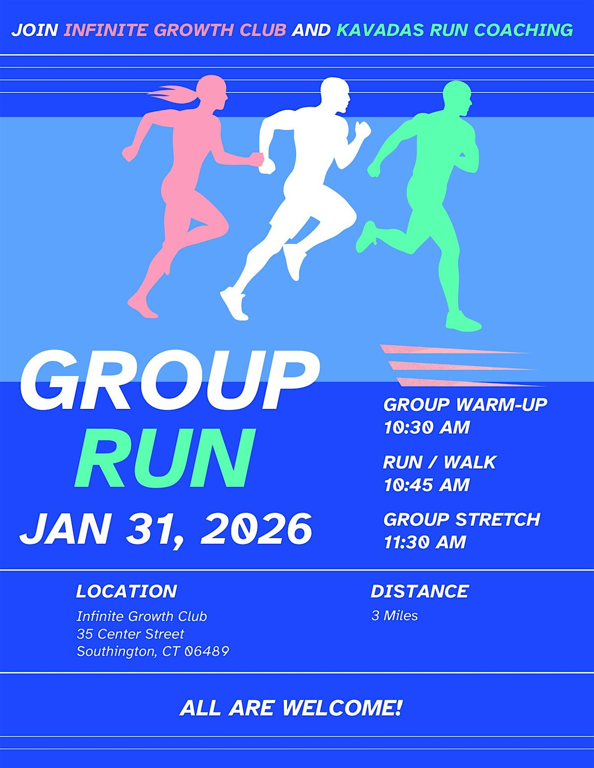 Come join Kavadas Run Coaching Group Run at IGC. Come ready to grow in your running journey, conquer new distances, and make new friends