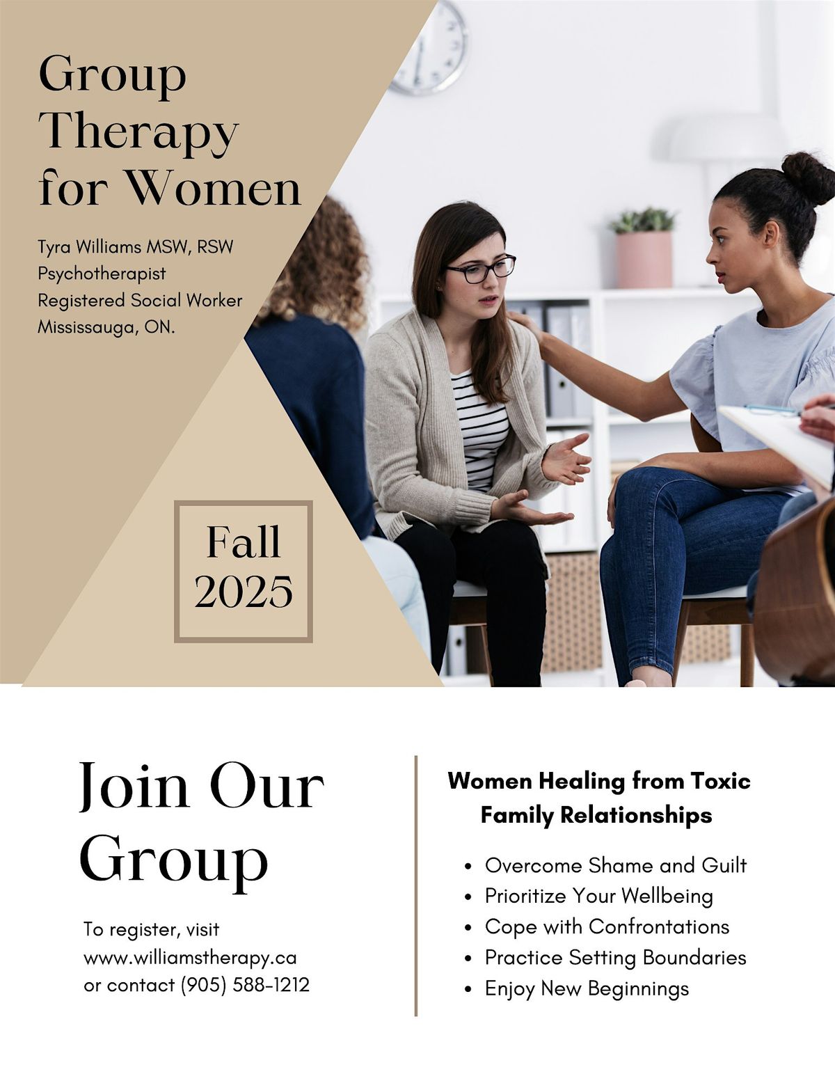 This structured group therapy program is designed to provide women with a new outlook on difficult family circumstances and a renewed sense of self-worth. Participants can expect to feel empowered to take steps towards building a lifestyle centered on inner peace and self-compassion, even in the face of family adversity. This group offers a safe space to gain mutual support from other women who are facing similar challenges. To foster an environment for healing from the emotional pain that comes with toxic family relationships, psychoeducational lessons grounded in compassion-focused therapy and cognitive behavioural therapy are incorporated into each session.