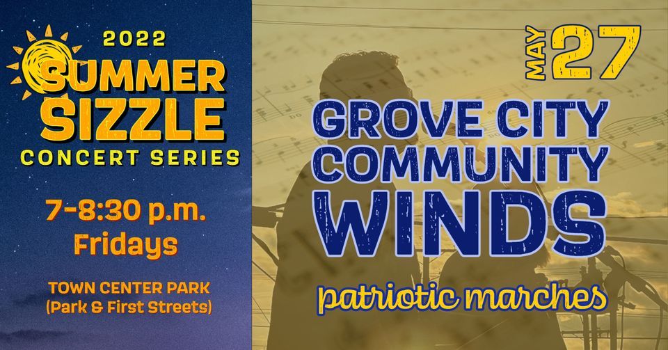 Enjoy the charm of the historic Town Center set to music on Friday evenings as open-air concerts fill the warm summer air beginning Friday, May 27 with the Grove City Community Winds. The free Grove City Summer Sizzle concerts are sponsored by the Grove City Parks and Recreation Department and feature a variety of entertainment by some of the best acts in central Ohio.Bring a chair or blanket and enjoy the performances in Town Center Park, 3359 Park St., across from the Safety Complex.