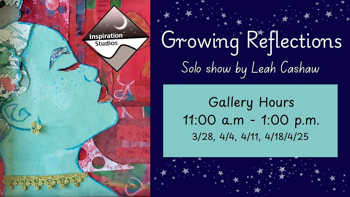Come check out Leah Cashaw's amazing solo art show, Growing Reflections, at Inspiration Studios! It’s happening on April 4, 2026 at 11:00 AM - 1:00 P.M. Dive into a world of creativity and personal expression through Leah’s unique pieces. Whether you’re an art lover or just curious, this is a chill spot to get inspired and enjoy some great vibes. See you there!