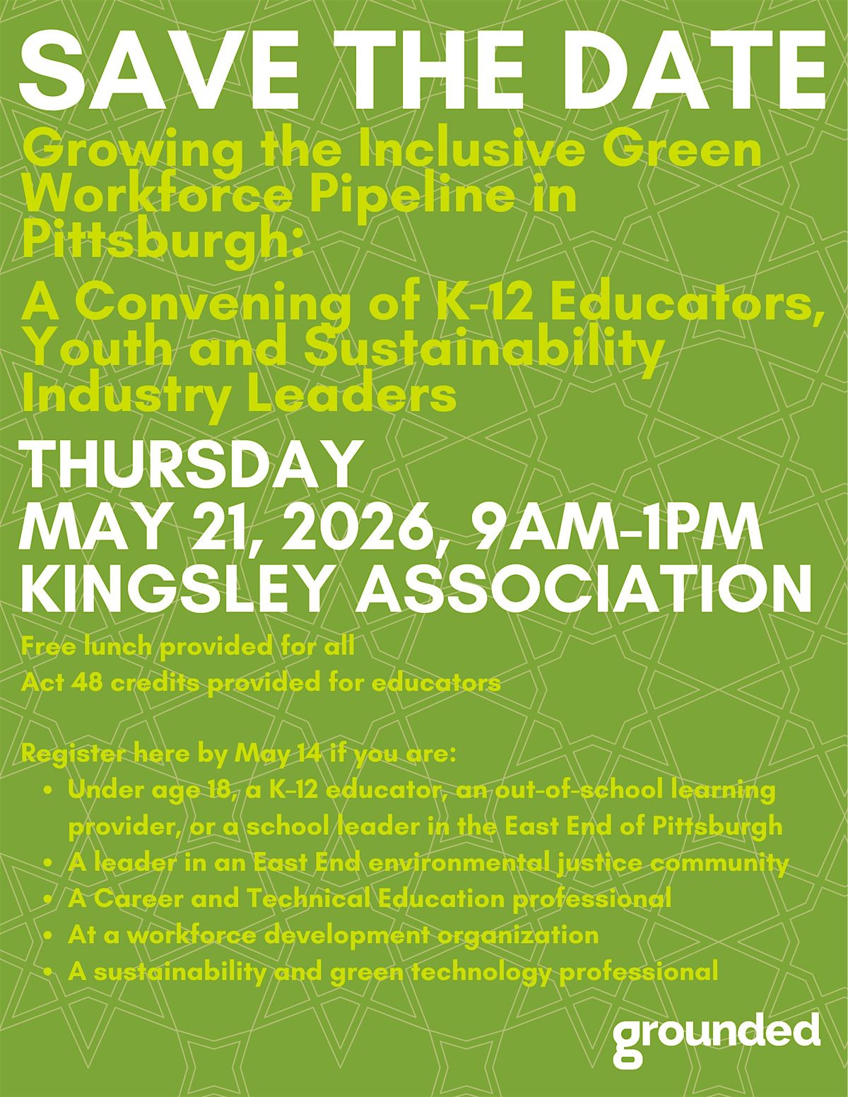 The insights generated during this convening will inform the next phase of planning for the Grounded Futures Lab and will also contribute to broader regional conversations about building an inclusive green workforce pipeline.