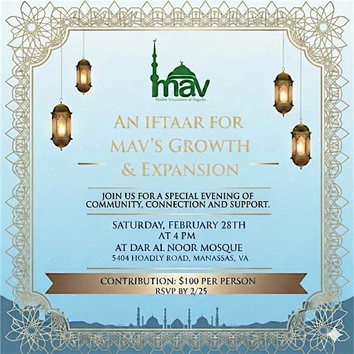 Support MAV’s growth and expansion.Join us for a special Iftaar and help build our future together.
