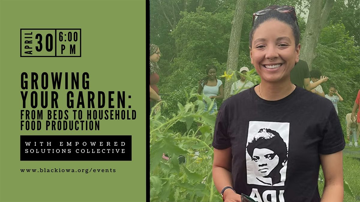 Join Tamara Marcus from Empowered Solutions Collective for "Growing Your Garden - From Beds to Household Food Production." This hands on workshop is designed to provide participants with the skills needed to scale up for longer seasons and household-level food supply beyond the summer. This workshop is ideal for gardeners with 1β2 beds (or equivalent) who want to expand. Participants will learn about expanding your growing space, soil building & tilling options, crop planning for the full season, and food storage & preservation. Participants can arrive early to tour the African American Museum of Iowa's latest exhibit, "Rooted: Labor, Land, and Legacy.