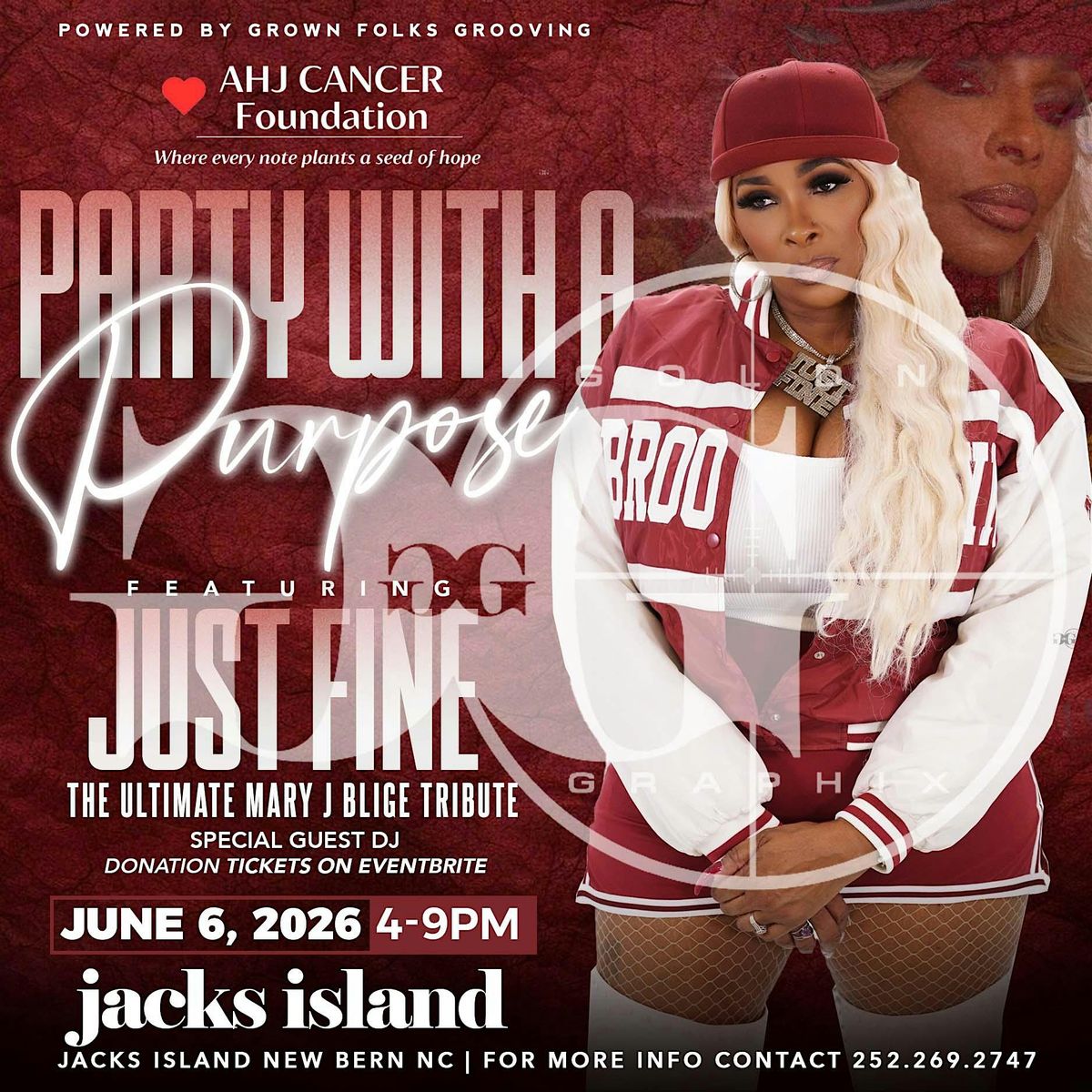 We invite you to attend a distinguished Day Party dedicated to raising awareness about Cancer Prevention and Community Resources. The event will feature live music by (Just Fine) The Mary J Blige Tribute Band, offering an authentic tribute to the acclaimed artist, Mary J. Blige. Guests will experience memorable performances reminiscent of the iconic moments from the 1990s, celebrating the legacy of this multi-award winning singer.