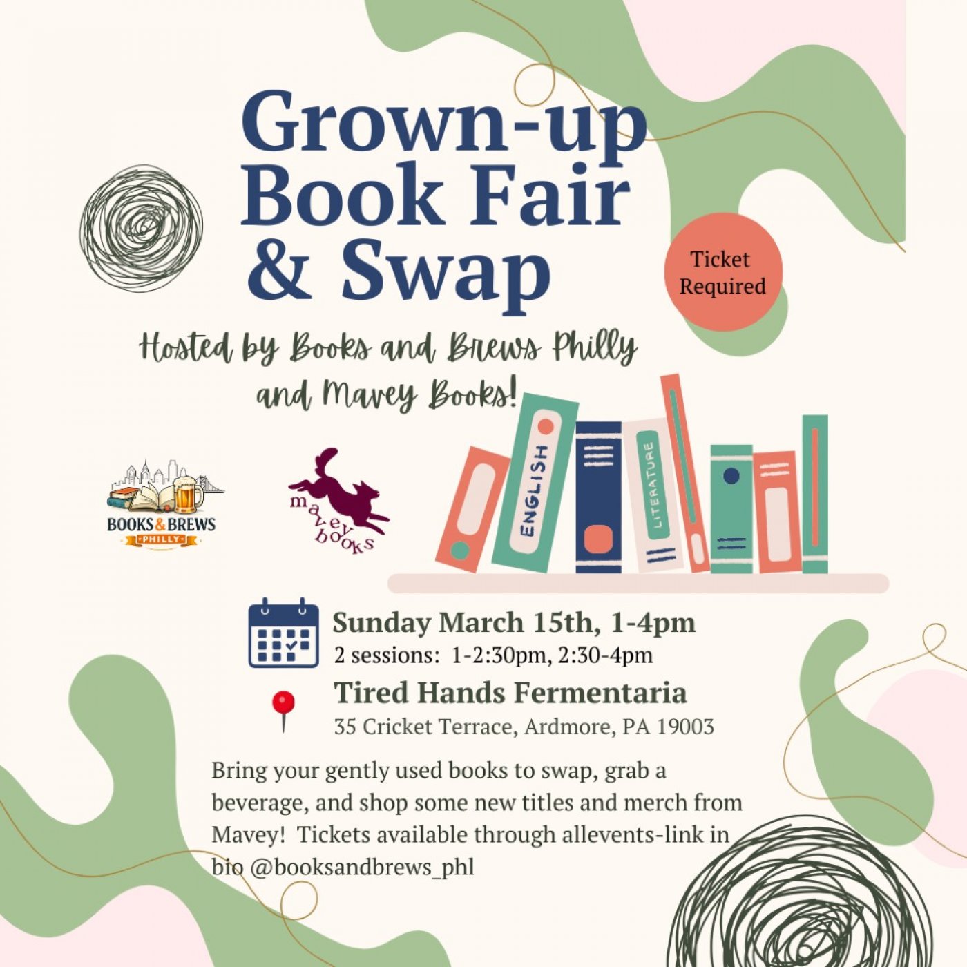 Books and Brews Philly and Mavey Books are back together for another Grown Up Book Fair and Swap at Tired Hands Fermentaria in Ardmore!! Bring a gently used book or books to swap, sip on a beverage and shop new books, gifts and merch from Mavey Books! Can't wait to see you there!