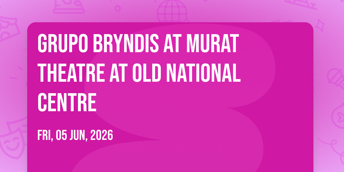 π Welcome to Grupo Bryndis at Murat Theatre at Old National Centre, where the impossible becomes possible and dreams take flight! ποΈ Join us at Murat Theatre at Old National Centre in the heart of Indianapolis, IN for an event that will redefine your expectations. π On June 5th, 2026 at 08:00 PM, witness the transformation of space and time into something truly magical. β¨ It's a curated experience combining the best of innovation, entertainment, and community spirit, creating moments that will be remembered for years to come. Whether you're a first-time visitor or a seasoned enthusiast, prepare to be amazed. π Book now to ensure your place in this unforgettable experience!