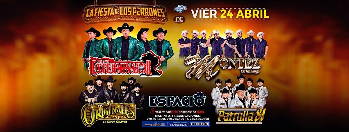 El 24 de abril de 2026 a las 9:00 PM (Eastern Time), ven a Espacio Discotheque para disfrutar de GRUPO EXTERMINADOR LOS ORIGINALES DE SAN JUAN MONTEZ DE DURANGO PATRULLA 81. Será una noche llena de ritmo y buena vibra con estos grandes del género. Prepárate para bailar y cantar con tus amigos en un ambiente súper relajado y divertido. ¡Te esperamos!