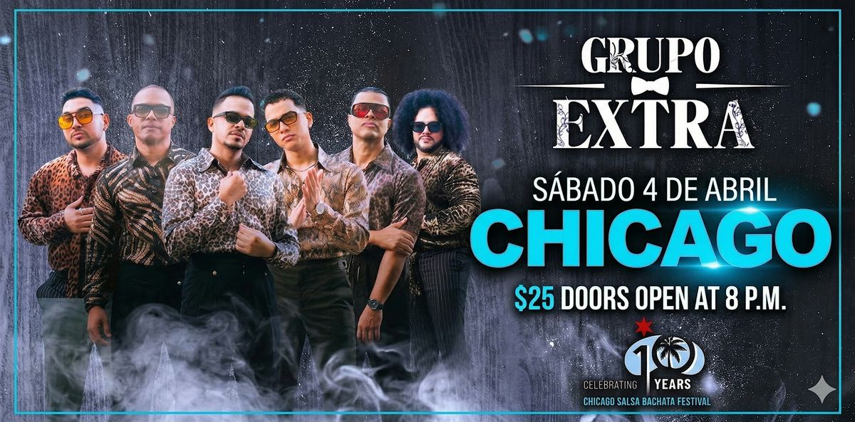 Get ready for the ultimate Bachata experience! Join us on Saturday, April 4th, as the world-renowned Grupo Extra takes the stage for an unforgettable night of music and dancing at the 10th Annual Chicago Salsa & Bachata Festival.