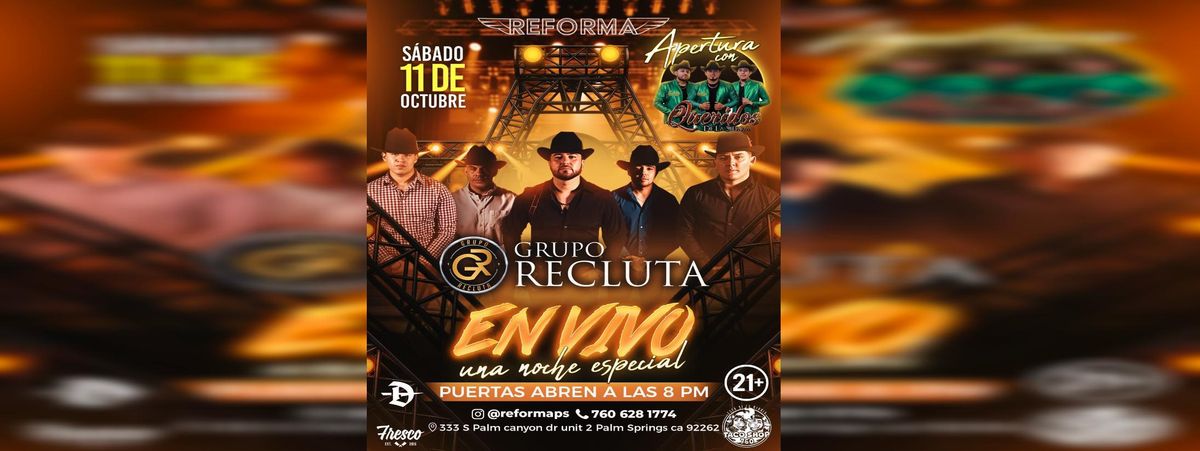 **Attend GRUPO RECLUTA EN PALM SPRINGS at Reforma Palm Springs, Palm Springs, CA, United States** Join us for GRUPO RECLUTA EN PALM SPRINGS. It's going to be a fun and relaxed event with great music and good company. A perfect way to spend your evening. **Event Details:** * **Location:** Reforma Palm Springs, Palm Springs, CA, United States Book your attendance today and be part of something extraordinary. #GRUPORECLUTAENPALMSPRINGS #event #exciting #Palm SpringsEvents #CAEvents