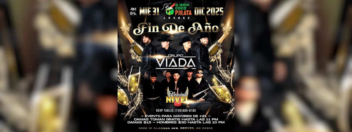 Don't miss GRUPO VIADA & PROXIMO NIVEL happening at El Coco Pirata Lounge, Denver, CO, United States on 2026-12-31T20:00:00-07:00. A great evening with good music and a laid-back atmosphere awaits you. Invite your friends for a night out! **Event Details:** * **Location:** El Coco Pirata Lounge, Denver, CO, United States Reserve your place now for an unparalleled exciting experience. #GRUPOVIADA&PROXIMONIVEL #event #exciting #DenverEvents #COEvents