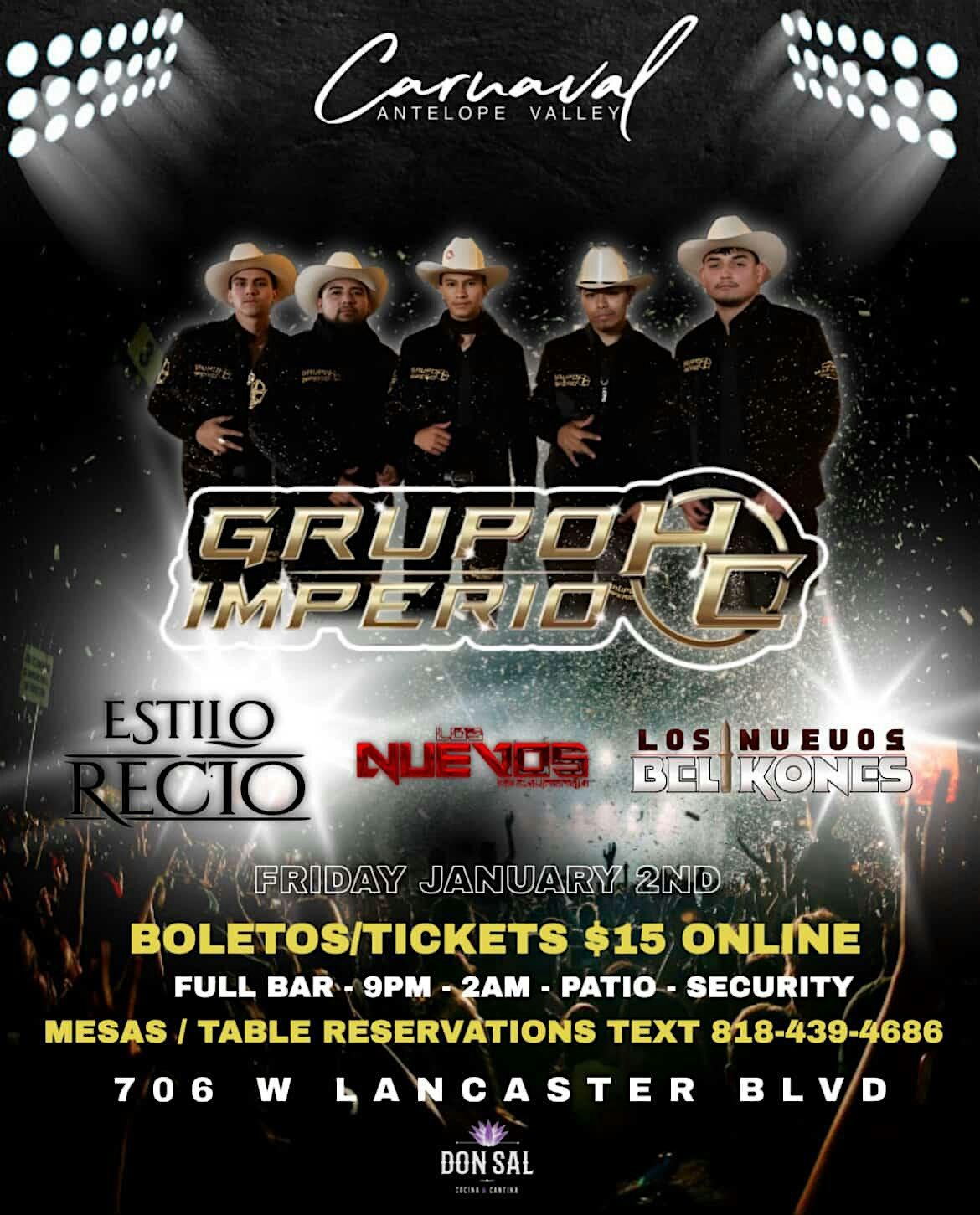 Start the year right Grupos En Vivo Jan 2 at Don Sal. 18+ vibes, live corridos, tickets just $15. AV, let’s turn up! Vamos!!