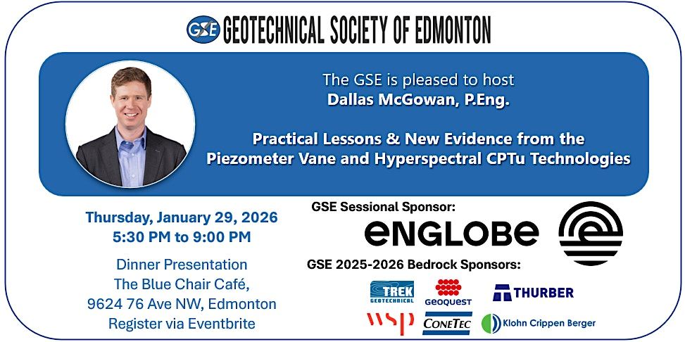 Dallas McGowan, P.Eng. is Senior Vice President – Innovation at ConeTec. A civil engineering graduate from the University of British Columbia, Dallas has spent more than a decade advancing in‑situ site characterization for challenging ground conditions, with a focus on oil sands tailings and cone penetration testing methods. His recent work includes two patent‑pending technologies—the in‑situ viscometer for tailings rheology and a CPT hyperspectral module amongst others—and he helped establish the Mikisew–ConeTec partnership to strengthen Indigenous participation in major Oil Sands projects. For the GSE program, he will share practical lessons and new evidence from the piezometer vane and hyperspectral CPTu, emphasizing how these tools may improve our ability to characterize the behaviour of soils.