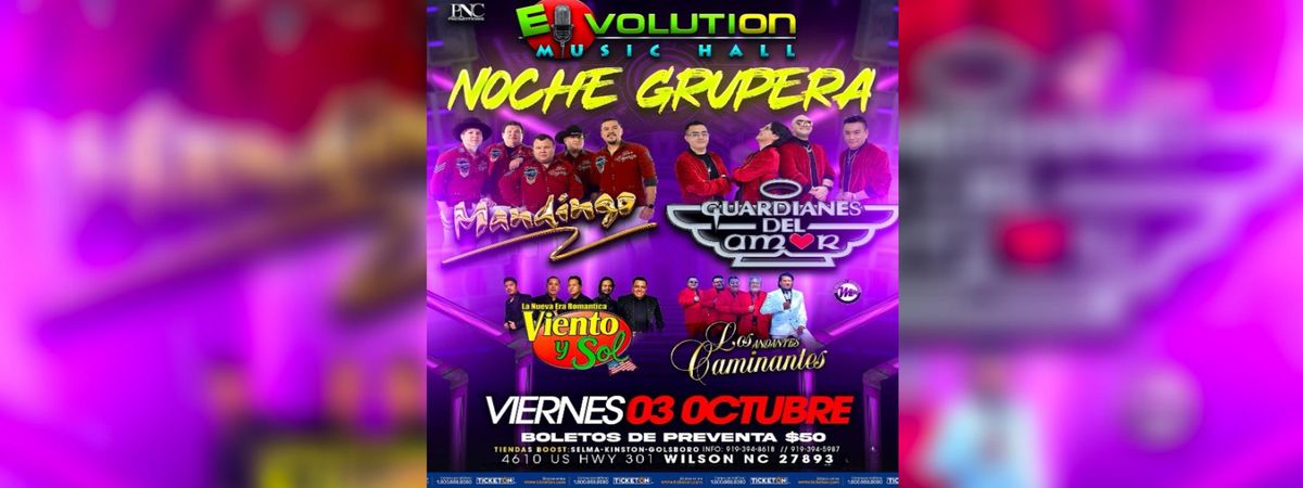 Experience the exciting event 'GUARDIANES DEL AMOR, MANDINGO& MAS' at Evolution Music Hall, Wilson, NC, United States. This must-attend gathering promises an unforgettable experience for all attendees. Join us for a day filled with innovation, networking, and inspiration. Book your attendance today and be part of something extraordinary. #GUARDIANESDELAMOR,MANDINGO&MAS #event #exciting #WilsonEvents #NCEvents