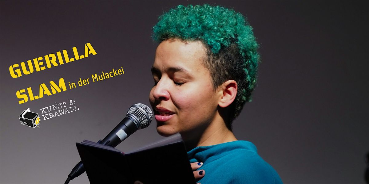 Der Guerilla Slam ist ein Poetry Slam, bei dem verschiedene Künstler*innen mit ihren selbstverfassten Texten gegeneinander antreten. Die Auftretenden haben 6 Minuten Zeit, von sich und ihren Texten zu überzeugen. Wer gewinnt, entscheidet niemand geringeres als das Publikum! Erlebt selbst, wie gesprochenes Wort einen ganzen Raum entflammen und begeistern kann!