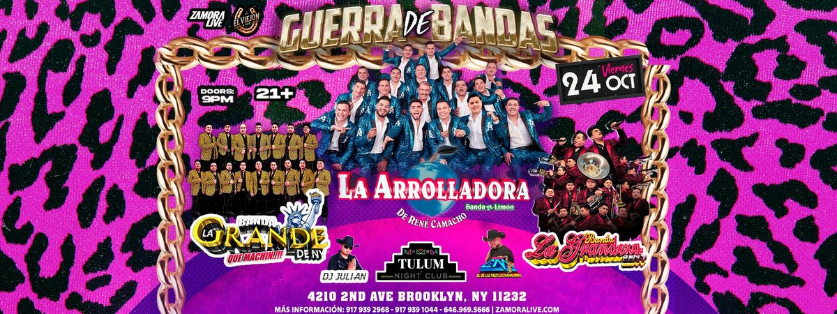 Experience the exciting event 'GUERRA DE BANDAS CON LA ARROLLADORA EN BROOKLYN NY' at Tulum Night Club, Brooklyn, NY, United States. This must-attend gathering promises an unforgettable experience for all attendees. Join us for a day filled with innovation, networking, and inspiration. Reserve your place now for an unparalleled exciting experience. #GUERRADEBANDASCONLAARROLLADORAENBROOKLYNNY #event #exciting #BrooklynEvents #NYEvents