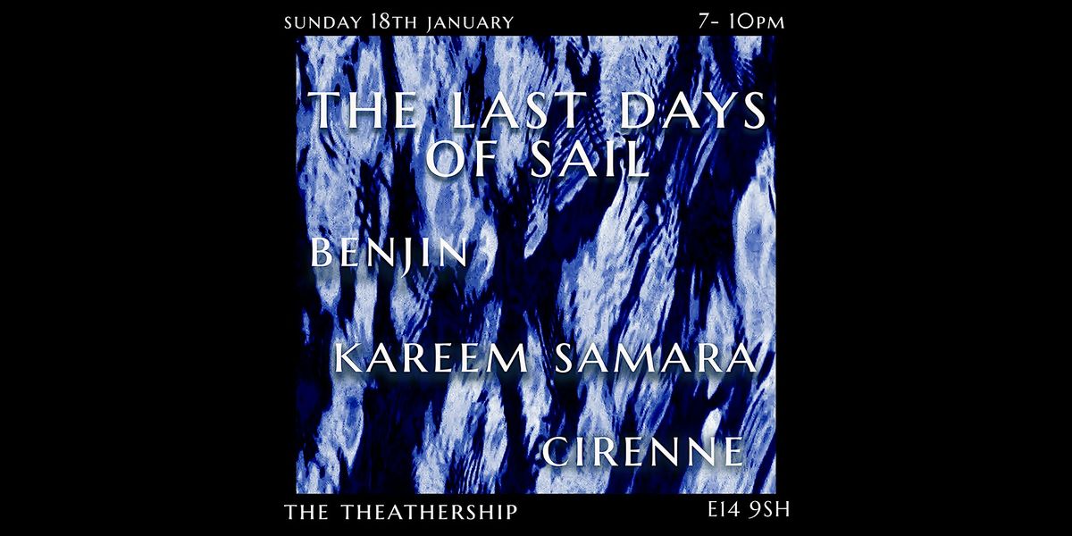 Join us for The Last Days of Sail, a warming evening of music, song, poetry and experimental moving image from benjin (with Clara Helbig), Kareem Samara and Cirenne. Music will begin at 1900!