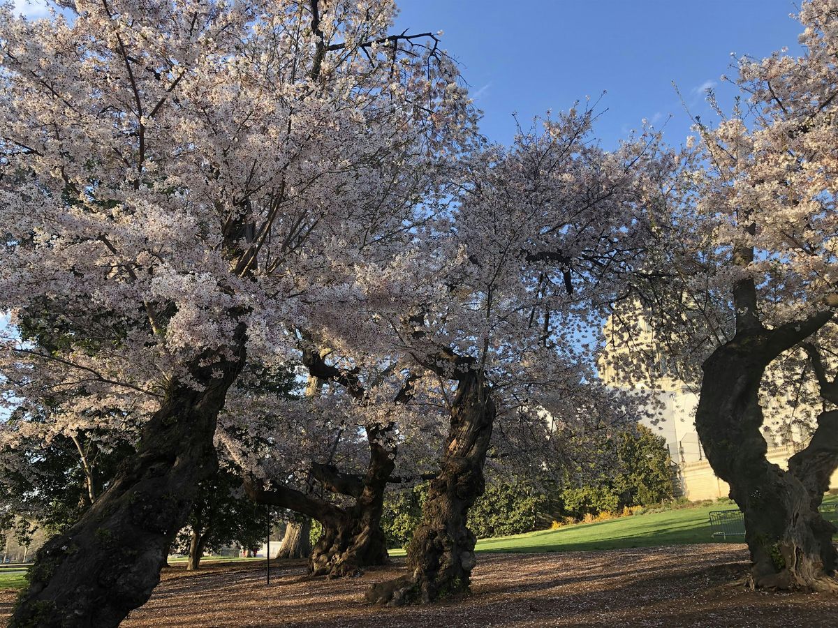 Join educational arborist and tour guide Sam Nelson (Tree Stories LLC) for a guided walk through historic sites, cherry groves, and parks in D.C.'s Capitol Hill. Together, we'll discuss tree science, history, and slow down to stroll and reflect under magical blossoms in spring (and take some photos). This walk will not include the beautiful but crowded Tidal Basin. Instead, we'll begin in Stanton Park, walk through the Senate Parks, and then finish at the U.S. Capitol's historic cherry groves around sunset. While cherry trees will be the focus, we'll have fun discussing other trees and DC history on the way. Maybe you'll even make a new friend on the walk (seriously, it happens on tree walks!).