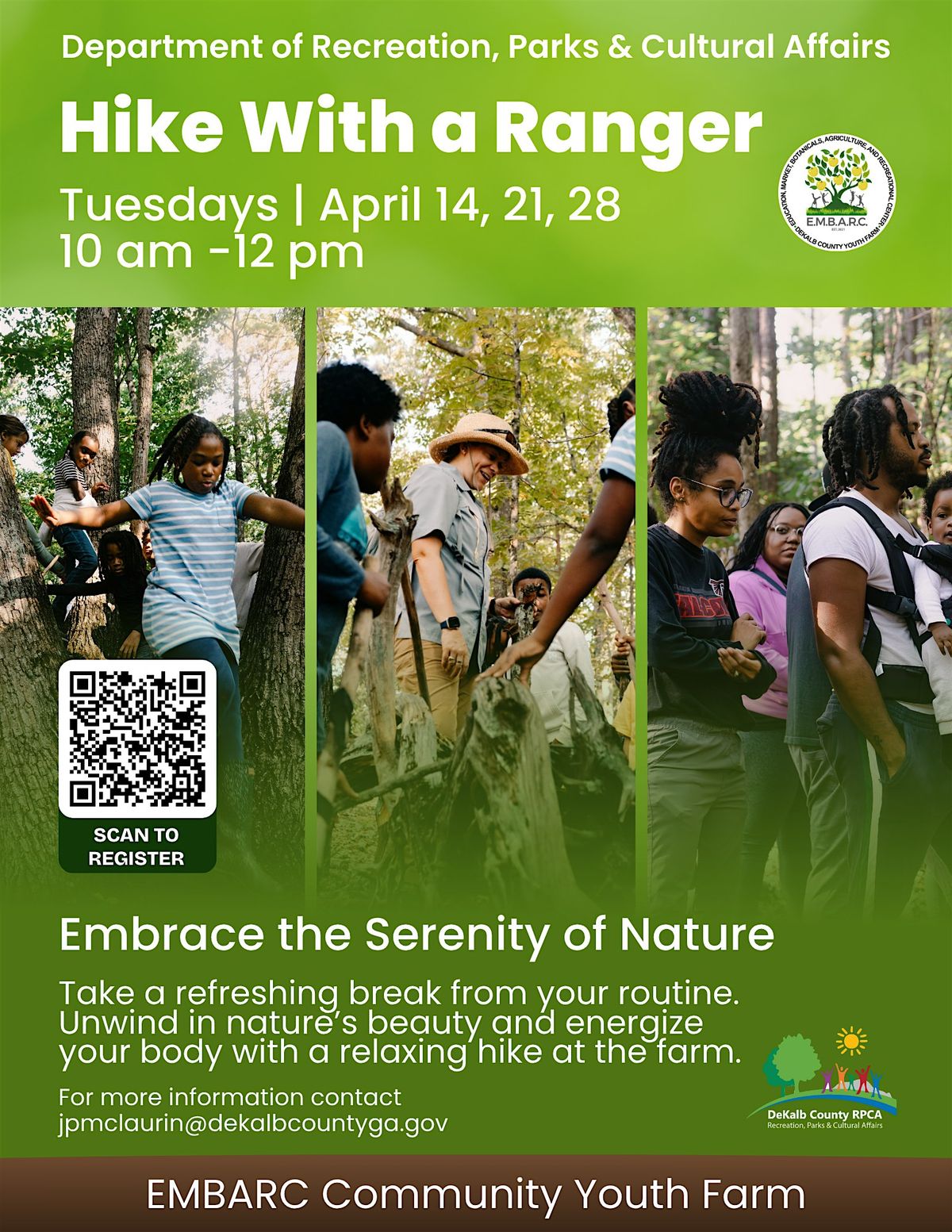 Join EMBARC Ranger on a guided hike as we explore the forest and surrounding natural spaces. Learn about the ecology and human history as you are led along secret trails and beautiful landscapes. We’ll share our favorite spots and how to hike safely and responsibly to reduce impact. Don't forget to bring water, closed-toed shoes, and sun protection. Make sure to dress for the weather!