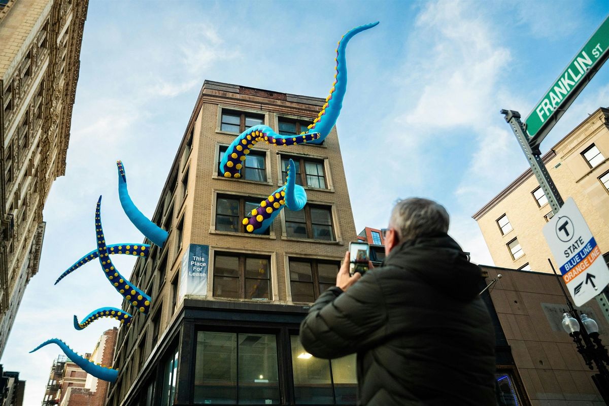 This winter, locals and visitors to Boston have been enthralled by the third annual WINTERACTIVE, a free, 18-site public art experience spread throughout the streets of Downtown Boston. The exhibition features both art and play elements, with many offering interactive light and sound elements that animate the city 24 hours a day.