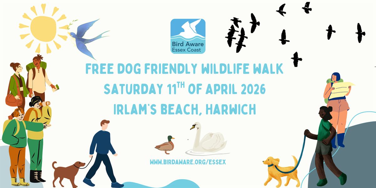 Join us for a dog friendly wildlife walk in Harwich. Our team of coastal rangers will guide you from the West End Lane car park along the seawall past Irlam’s and Sheep beach and back. Please note that this walk will not be suitable for people that cannot walk long distances and over mixed terrain.
