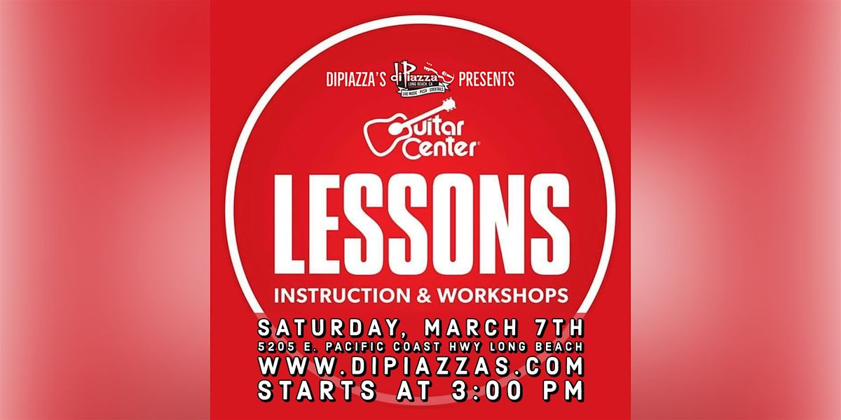 Presented in partnership with Guitar Center, join us for a special day of guitar instruction, hands-on workshops, and music education! Perfect for beginners to intermediate players looking to level up their skills with expert guidance. Saturday, March 7th starting at 3:00 PM at Long Beach's iconic live music venue (family-owned since 1984). Enjoy the full DiPiazza's experience—pizza, cocktails, and great vibes—while you learn and jam. Whether you're picking up a guitar for the first time or refining your technique, come ready to play!