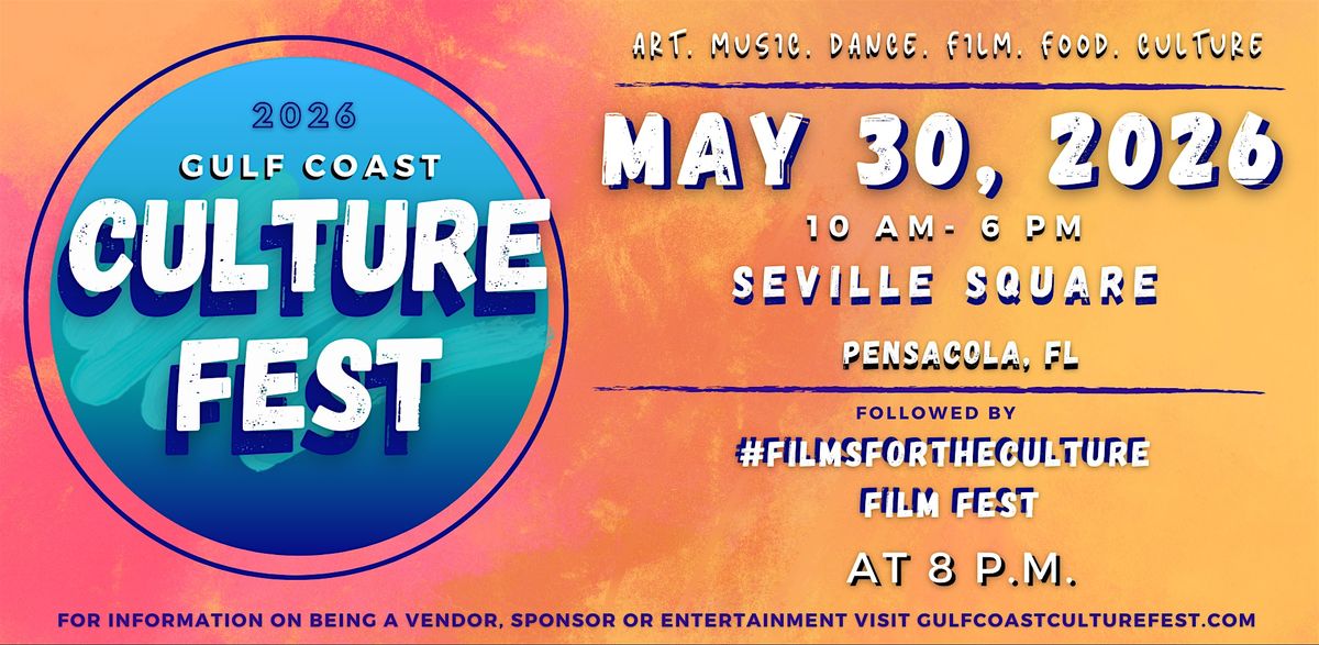 Experience Gulf Coast Culture Fest, a dynamic two-part celebration taking place on May 30, 2026, at Seville Square in downtown Pensacola. Open to all, this event brings the community together to celebrate the cultures, creativity, and connections that shape the Gulf Coast.