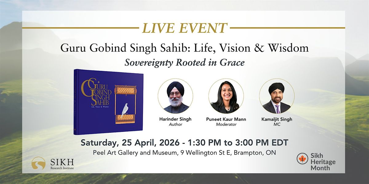 The program features a moderated conversation between Harinder Singh and Puneet Kaur Mann, hosted by Kamaljit Singh, followed by an interactive audience Q&A. Together, the discussion explores a vision of sovereignty rooted in grace—where courage, compassion, and dignity come together in the Guru’s life and legacy.